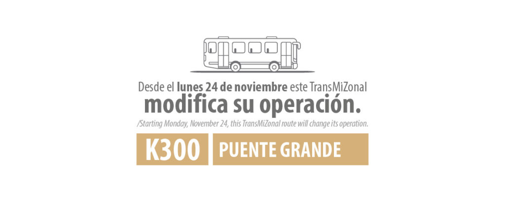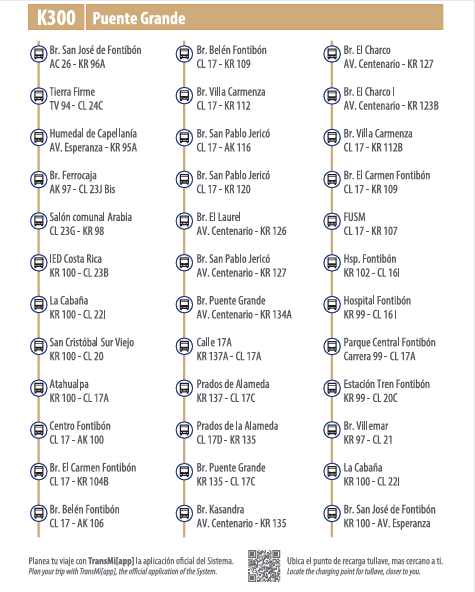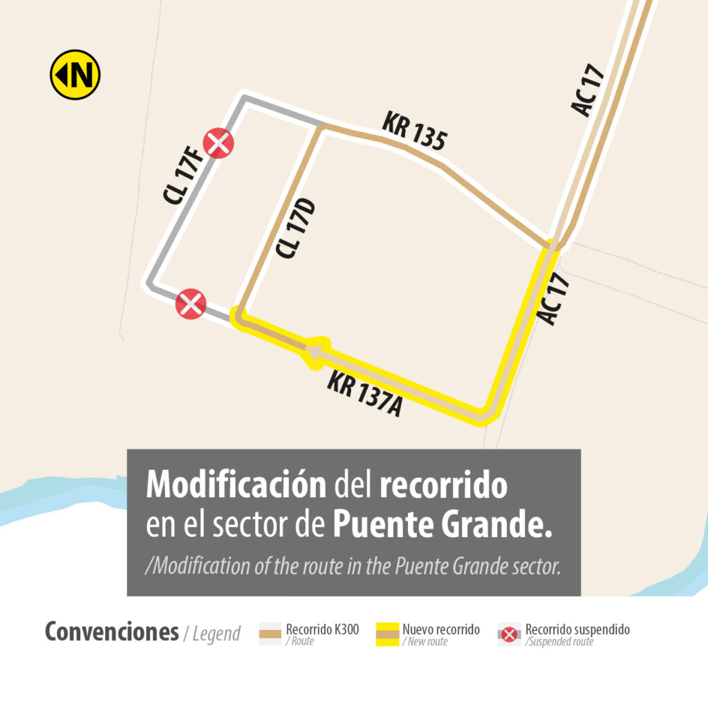 A partir de ahora, la ruta zonal K300 Puente Grande de TransMilenio modifica su trazado , con el objetivo de mejorar la cobertura y facilitar el acceso al transporte público en esta zona.